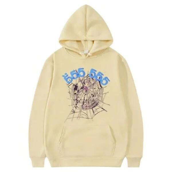 This distinctive hoodie captures attention with its dazzling spider web logo, adorned by a prominent “555 555” graphic thoughtfully overlaid upon it. The sweatshirt’s hood also proudly showcases the Sp5der logo, adding to its bold and eye-catching design.