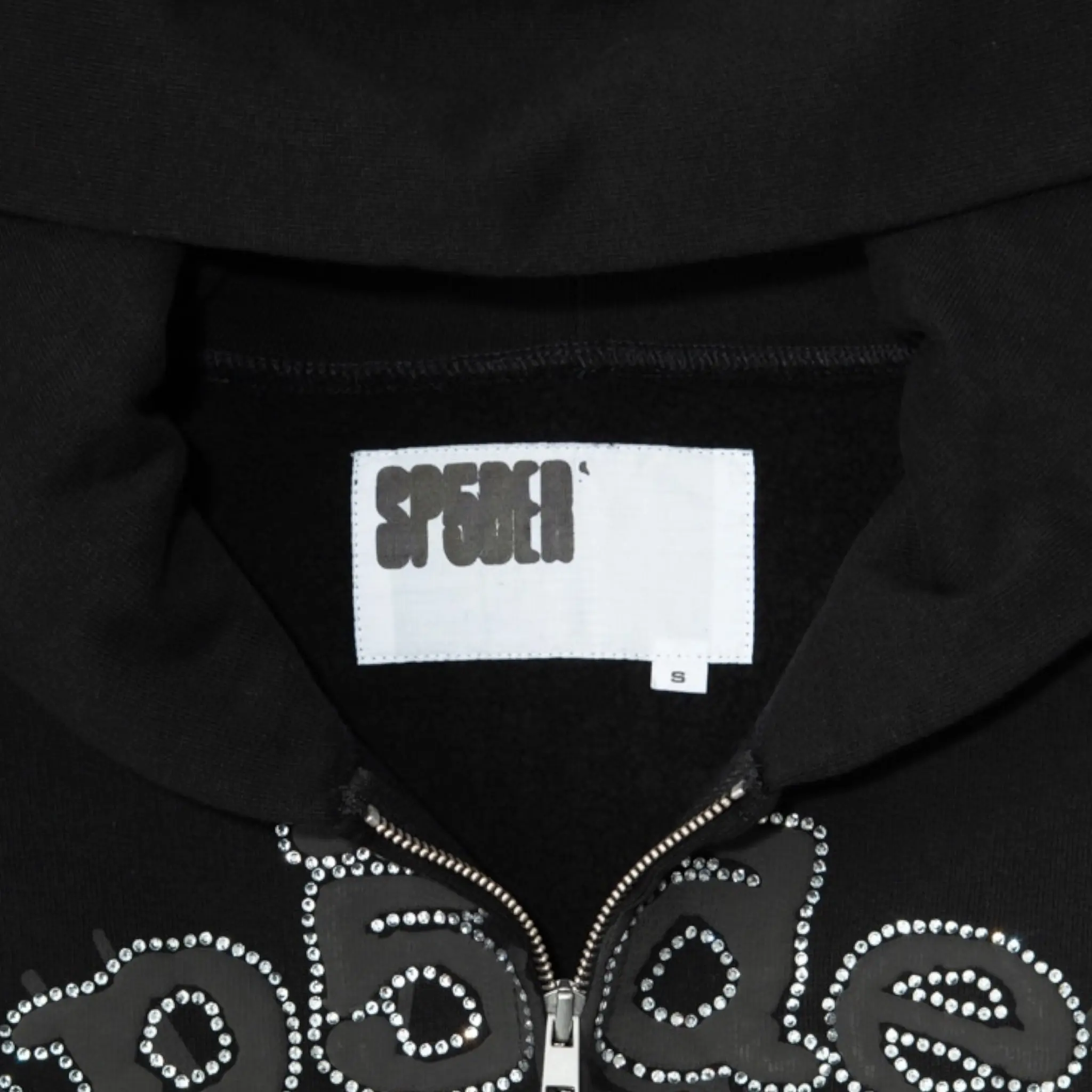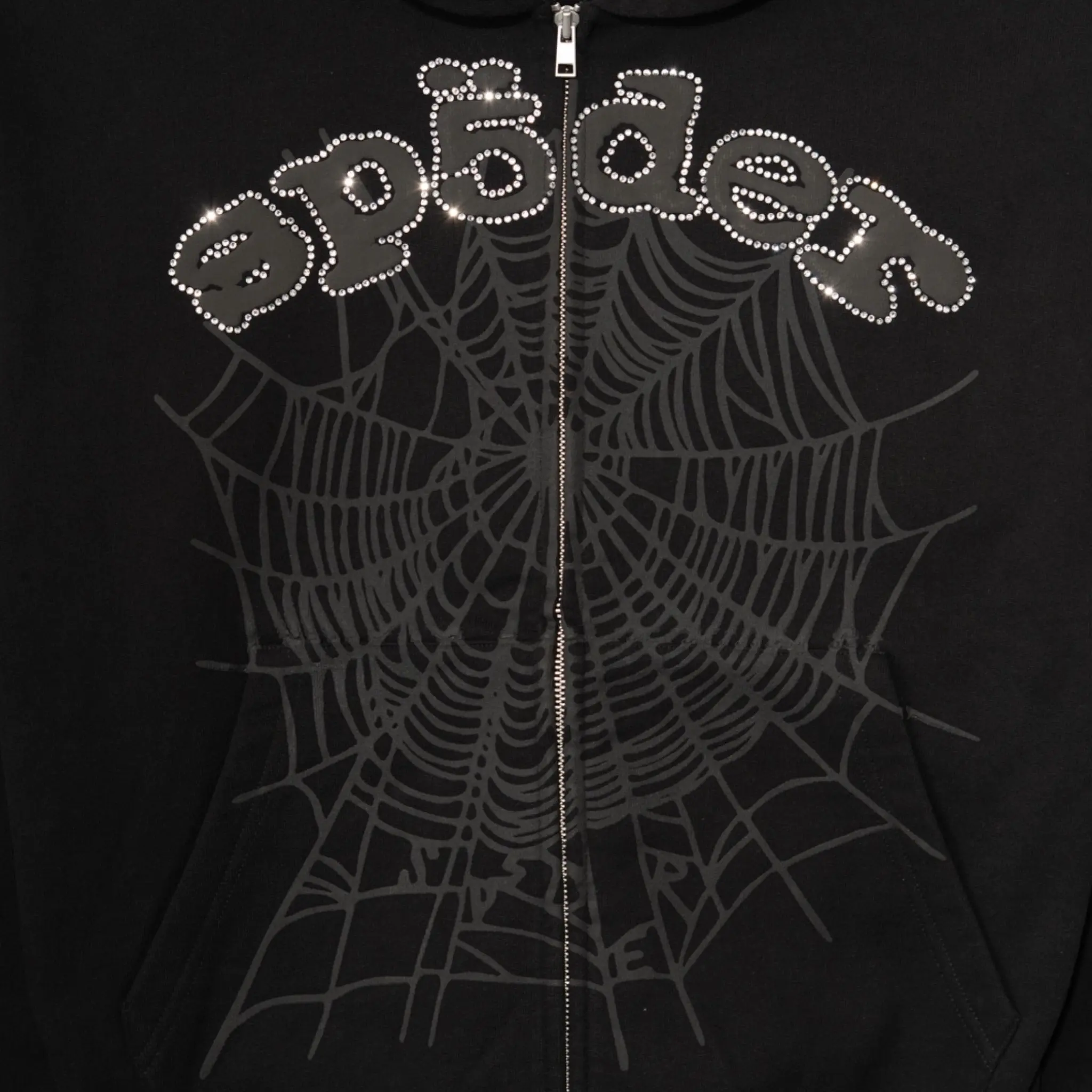 Sp5der OG Web V2 Rhinestone Zip-Up Hoodie — a bold essential for anyone who wants luxury details with true streetwear attitude.