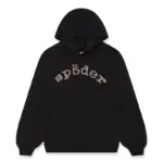 This distinctively eye-catching hoodie showcases a dazzling spider web logo adorned with a prominent “555 555” graphic thoughtfully layered atop it. The sweatshirt’s hood also boldly displays the Sp5der logo, adding to its striking and bold design.