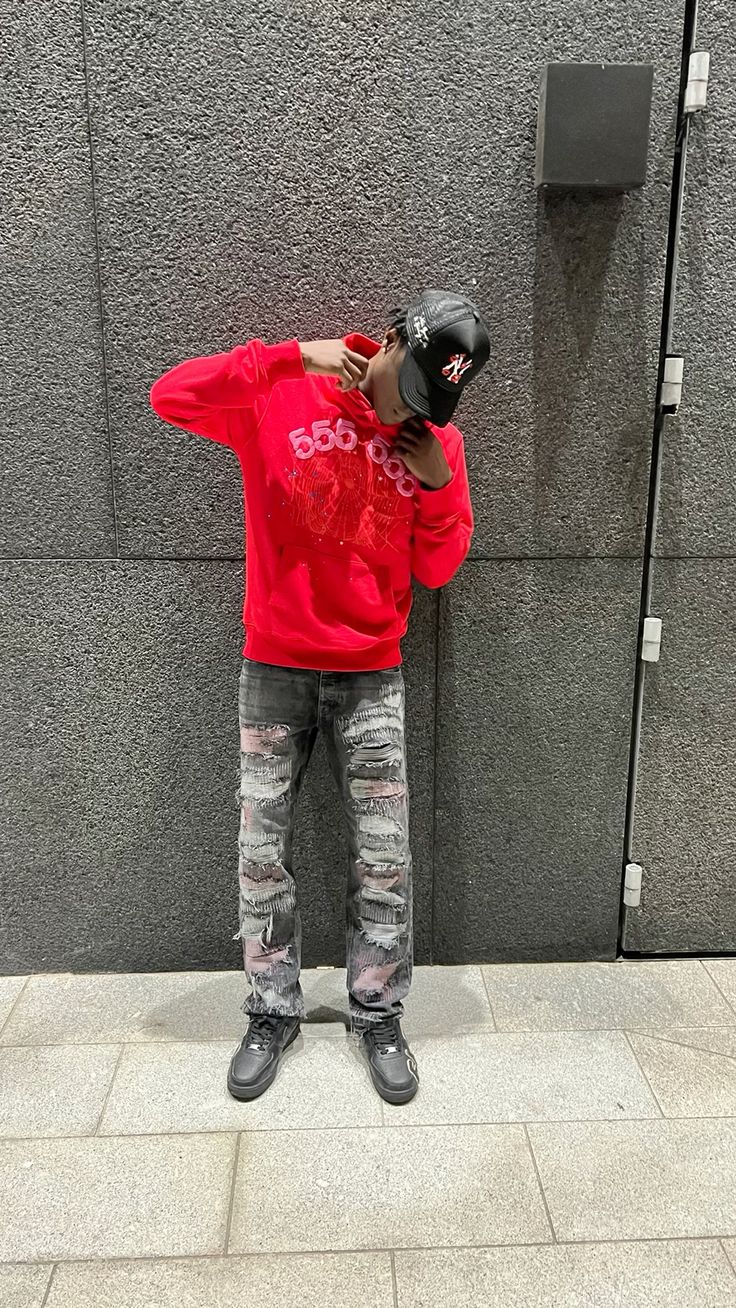 In November of 2021, Young Thug’s Sp5der brand unveiled the Sp5der Worldwide Red Angel Number 555 Hoodie, accompanied by a coordinating pair of sweatpants.